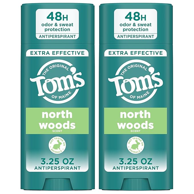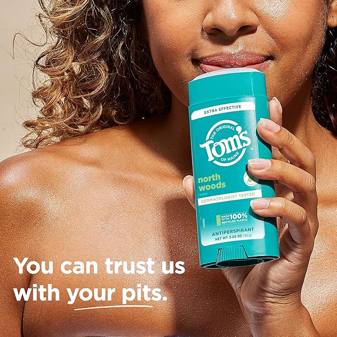 - Two 3.25 oz Tom’s of Maine North Woods Antiperspirant, with Recycled Aluminum for men and women, it's for everyone