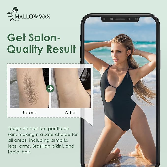 - Professional-Grade Results in Your Home: Achieve salon-quality results with our hard wax beads for hair removal. Mallowwax saves you time and money, making it the go-to waxing beads for home use, including Brazilian and bikini areas.