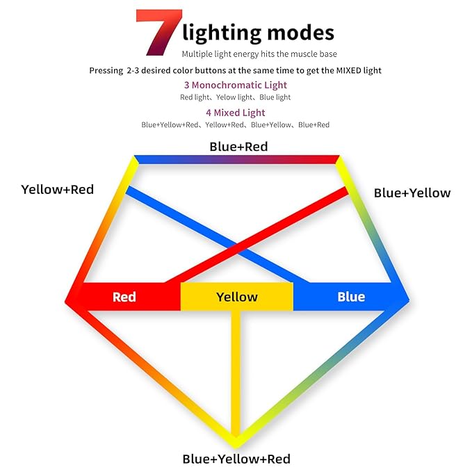 - Dazzling LED Spectrum for Your Skin's Delight : Immerse yourself in the magic of red, blue, yellow, and infrared LED light therapy settings. Smart control system gives you greater flexibility and personalization to create your own therapy, choose your preferred color setting also can mix the light, 7color FACIAL THERAPY you can choose and enjoy SPA-quality face beauty at home