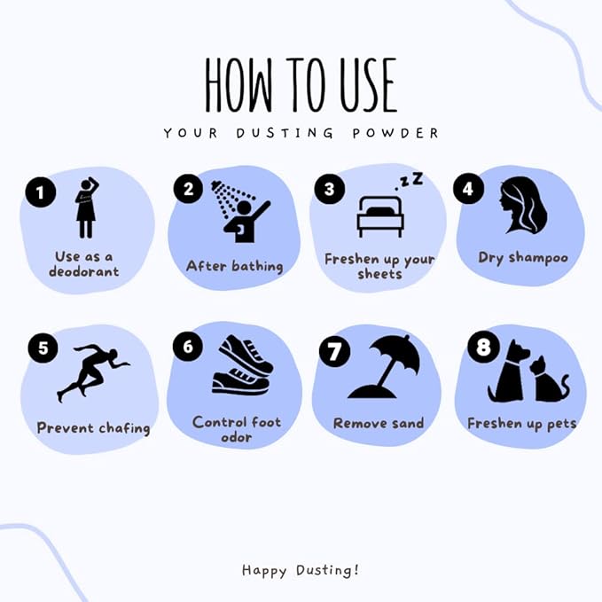 - This dusting powder for women is crafted with arrowroot powder organic, ensuring a natural and safe alternative to traditional talcum powder for men and women alike.