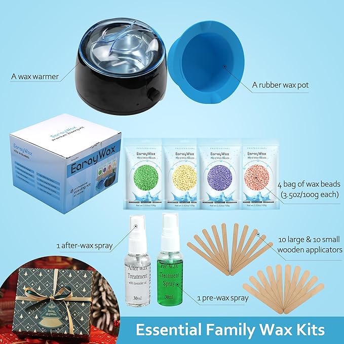 - IDEAL FOR GIFT: Intended for waxing beginners and enthusiasts as the hard wax kit is easy to use and superior in quality at an affordable price, a complete assortment to allows you get professional, salon-quality hair removal results. EARAYWAX waxing kit is a perfect choice for birthdays, anniversaries, Valentine's Day, Thanksgiving, Christmas, or any special occasion.