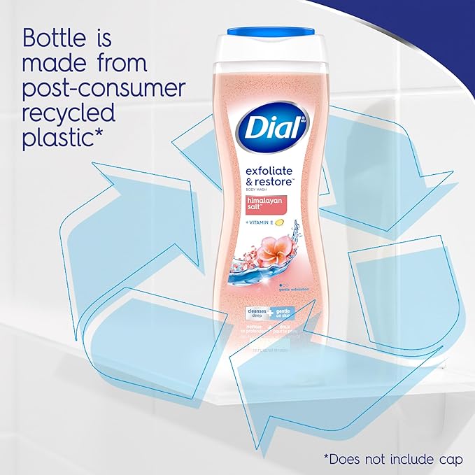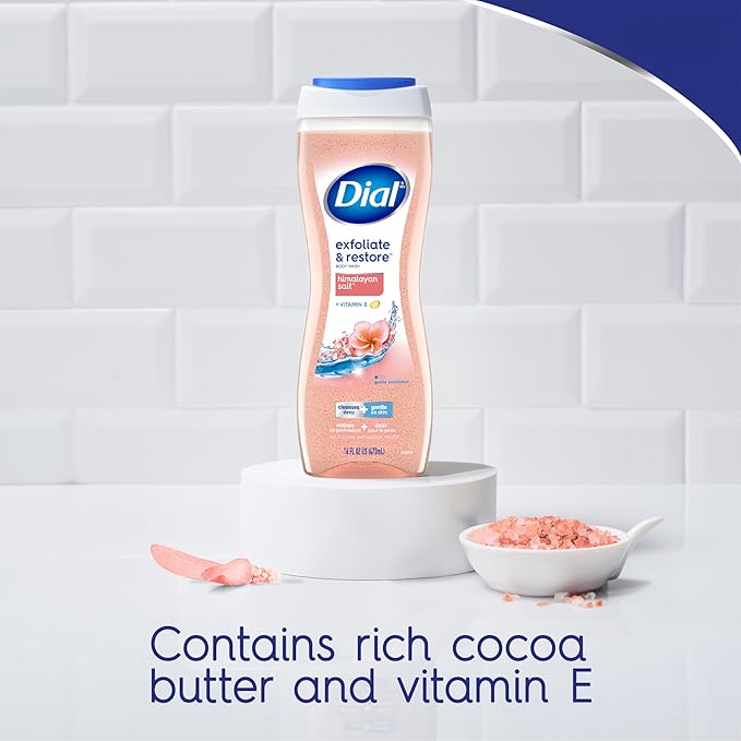 - Gentle Exfoliation: Dial Exfoliate & Restore Himalayan Salt Body Wash polishes dull, uneven skin to reveal naturally radiant, glowing and healthy looking skin after just one shower. Lifts dirt and impurities and leaves skin feeling renewed and restored