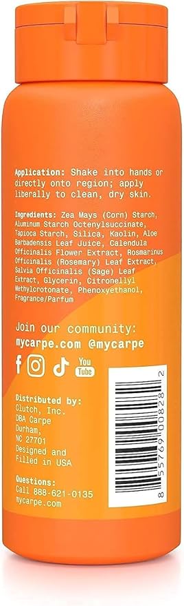 - FUNK-FREE FRESHNESS: Carpe's feminine powder is designed to be safe for private parts, underboob sweat, and skin folds. Our super-fine body powder for women is designed to feel soft on the skin, prevent chafing, and absorb sweat.