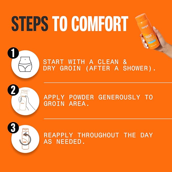 - DON'T SWEAT IT: Carpe's sweat absorbing groin and body powder for women is vegan and free from parabens, phthalates, formaldehydes, sulfates, and talc. Filled in the USA with global components.