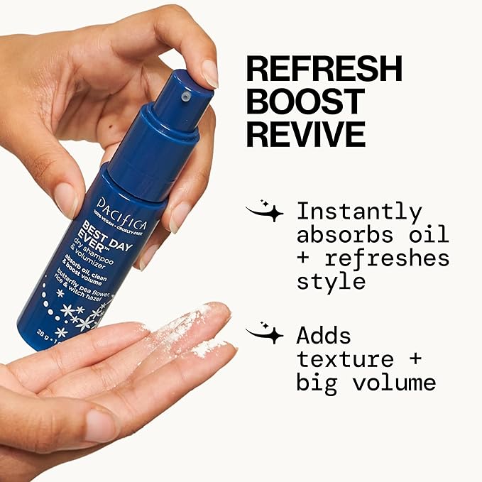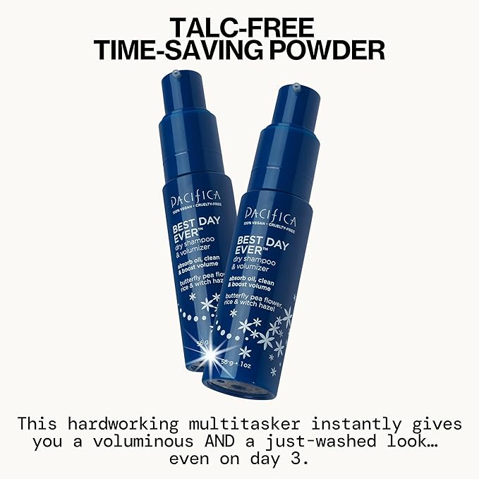 Pacifica Dry Shampoo Powder - Best Day Ever Waterless Shampoo & Instant Volumizer - adds Texture, Refreshes & Absorbs Oil, Non-Aerosol for Women of All Hair Types Natural & Vegan Dermatologist Tested