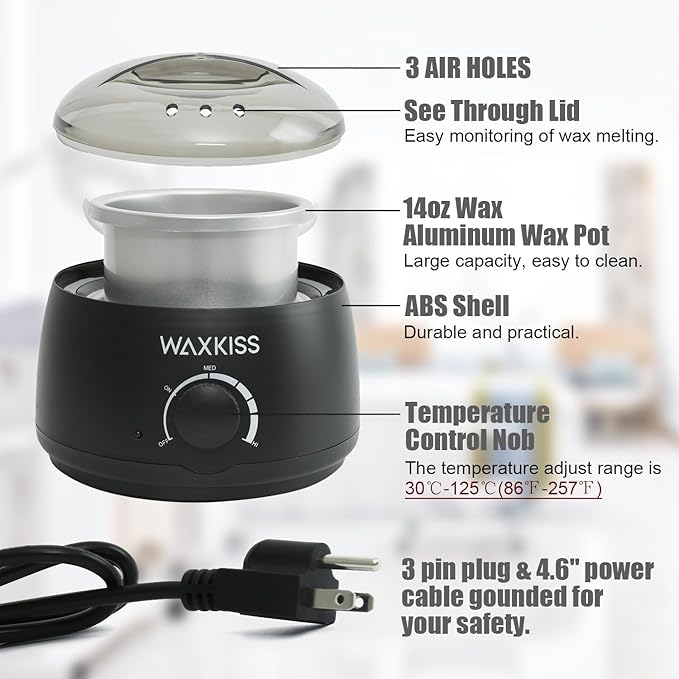 - PREMIUM ACCESSORIES: The non-stick removable aluminum wax pot with a handle makes it extremely easy to clean. The see-through lid allows for effortless monitoring of the wax melting process. Additionally, the long 4.6'' power cable provides convenience when moving the machine around.
