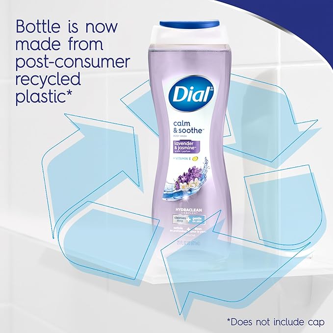 Dial Body Wash, Calm & Soothe Lavender & Jasmine Scent, 16 fl oz (Pack of 4)