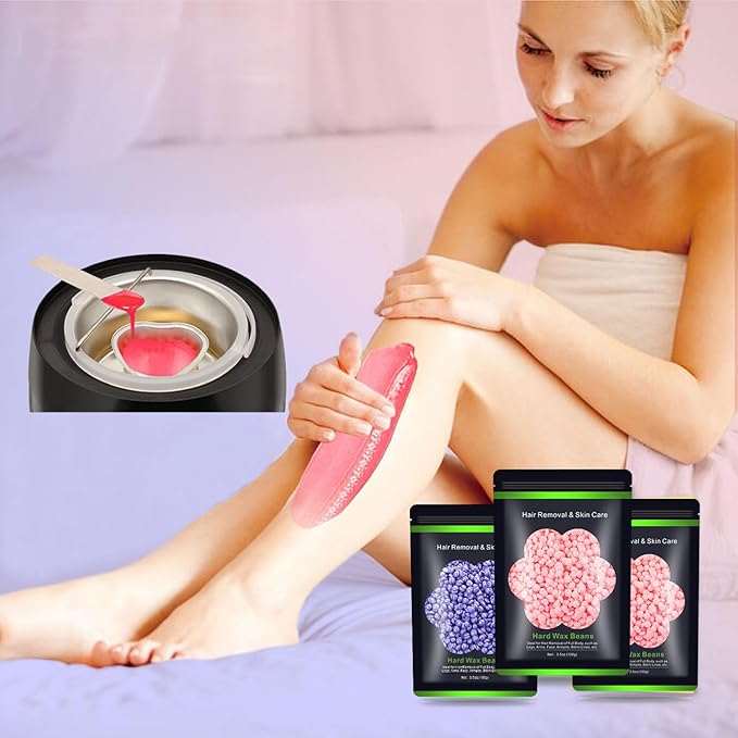 - Hard Wax Kit for Hair Removal with Sticks: This wax bean kit includes 3 packs of various flavor premium waxing beads (such as blue wax) and 10 large wax sticks, bikini wax, face wax, leg wax, and eyebrows wax can achieve your smooth skin in minutes