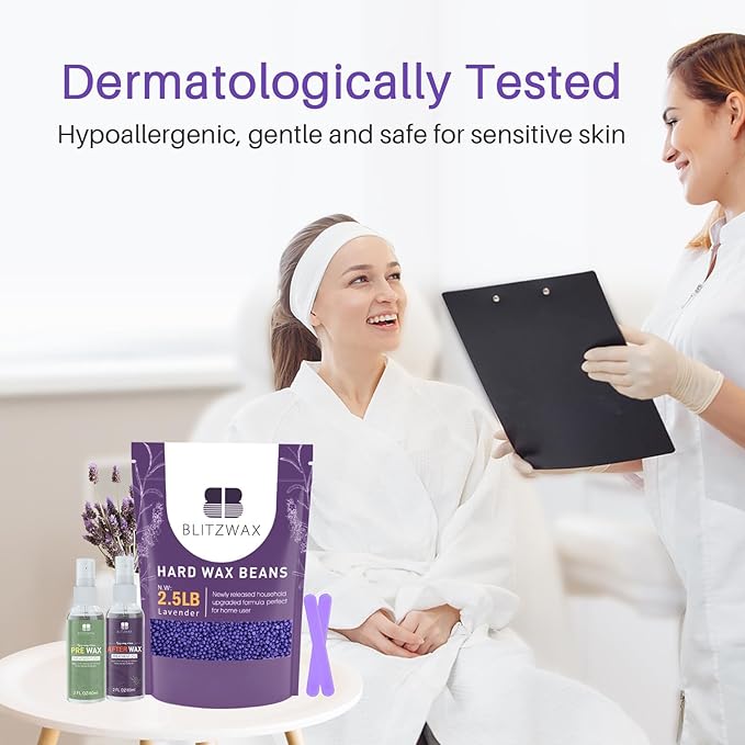 BLITZWAX 2.5lbs Hard Wax Beads for Hair Removal Lavender Waxing Beans for Sensitive Skin, Face, Eyebrows, Brazilian, Legs and Bikini - with 2 Silicone Sticks and 2 Wax Oils for Home and Salon Use
