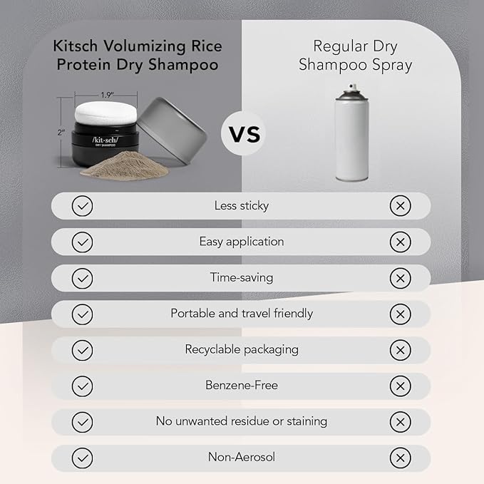 - REVIVE YOUR LOOK ANYWHERE, ANYTIME: Elevate your style effortlessly with our ingredient-rich tinted dry shampoo hair powder. Designed for convenience, it extends the life of your hairstyle from 3 to 6 days beyond wash day, ensuring freshness and volume on the go. Experience instant lift and revitalized locks with Kitsch Volumizing Travel Size Dry Shampoo Powder—it’s your secret weapon for a fresh, voluminous look without the need for water.