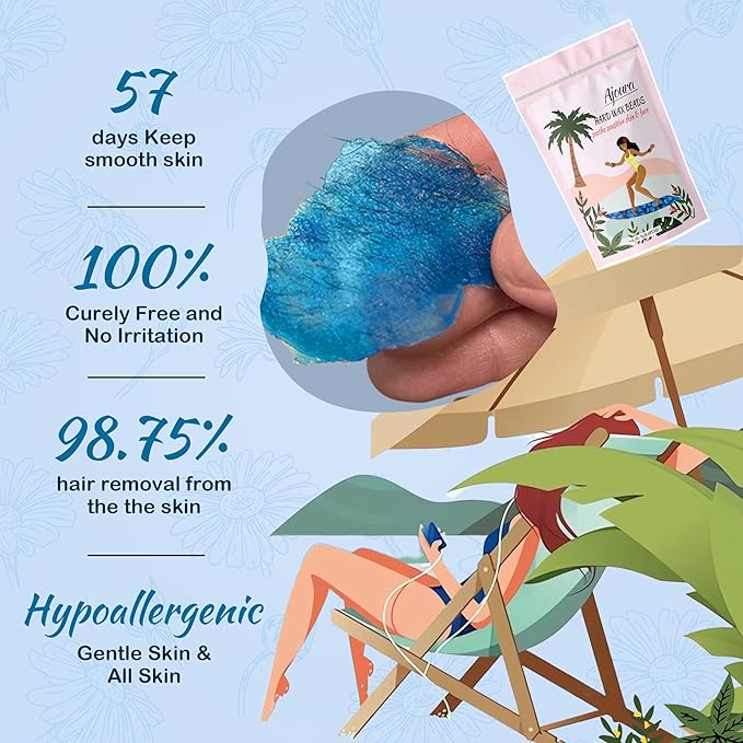 Ajoura 1lb Hard Wax Beads for Hair Removal, Chamomile Wax Beans for Full Body, Brazilian, Bikini Waxing, Face, Eyebrows, Underarms, Arms, Chest, Back, Legs, Home Refill wax for Wax Warmer Kit (Blue)