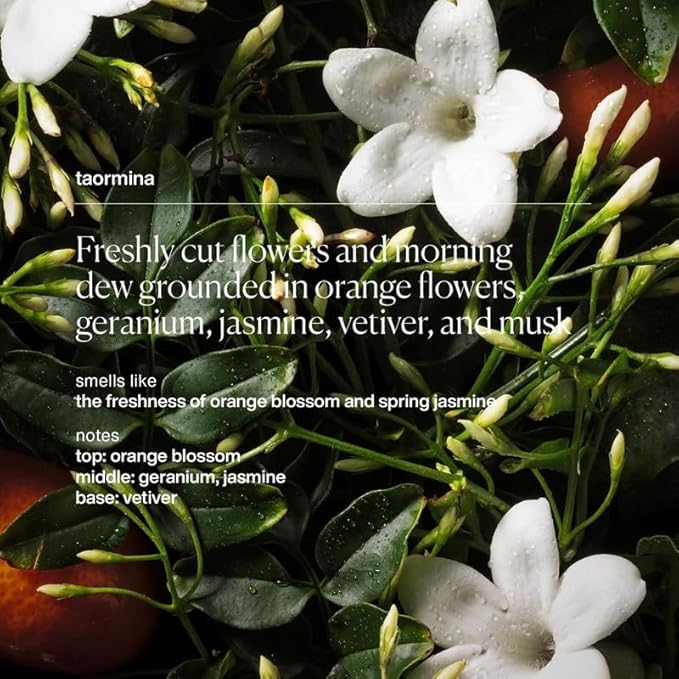 - ORANGE BLOSSOM, GERANIUM & JASMINE FRAGRANCE: Enjoy the refreshing scent of Taormina, a blend of freshly cut flowers and morning dew grounded in orange flowers, geranium, jasmine, vetiver, and musk with our heat activated fragrance.