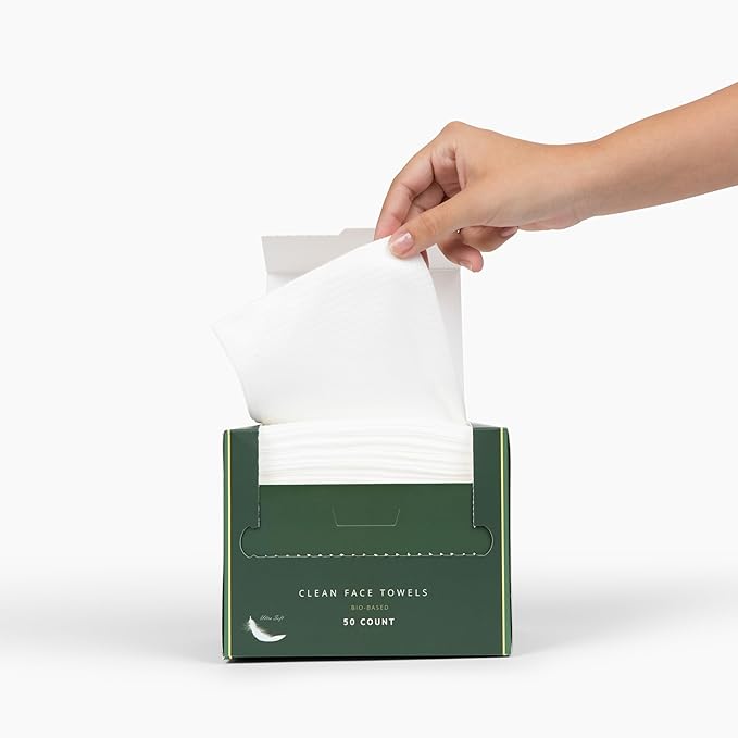 Clean Facial Towels for Sensitive Skin, 100% USDA Biobased Face Towels, 50 Count, Ultra Soft, Makeup Remover Dry Wipes, Viscose