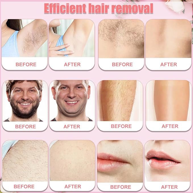- 【Professional Formula for Effective Hair Removal】 Experience salon-quality results at home. Our hard wax beads are specially formulated for efficient body wax and facial wax needs, including bikini wax, underarm wax, and brazilian waxing. This depilatory wax grips stubborn hair tightly for a painless wax experience, leaving your skin impeccably smooth.