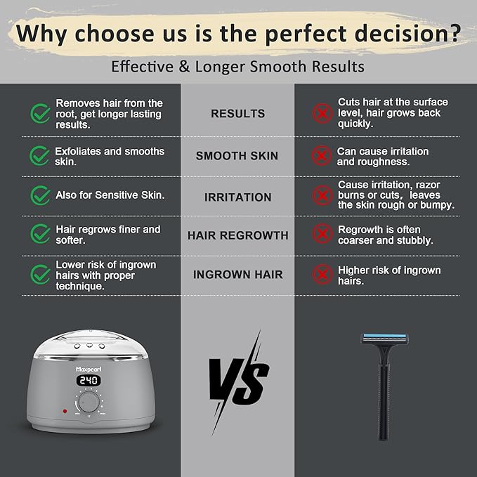 - EFFICIENT & LONG-LASTING RESULTS: The Maxpearl full-body waxing kit is designed for fast, effective hair removal. It not only removes hair effectively for a smoother, cleaner finish but also significantly slows down hair regrowth. Enjoy a hair-free experience for up to 6 weeks, giving you more time to appreciate your smooth, silky skin. Perfect for achieving long-term results with minimal effort.