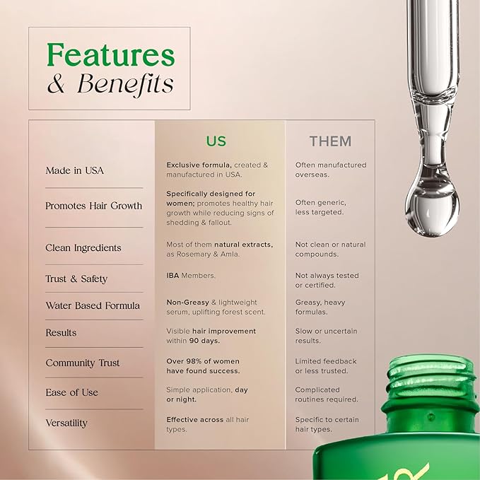 - LAB TESTED & IBA CERTIFIED MEMBERS: Made in the USA, developed by specialists & rigorously tested under strict laboratory conditions, our hair serum for hair growth is member of the International Beauty Association (IBA). Trusted by over 100,000 women & men, this formula is tailored to nourish hair, promoting a healthy, thick, & shiny appearance. Paraben Free & Sulfate Free.