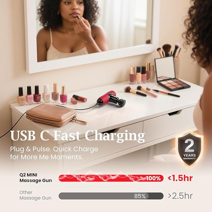 - Women’s Muscle Recovery Massage Gun – Deep Relief: Our Q2 mini massage gun delivers targeted tension relief specifically for women, addressing aches in your shoulders, back, calves, and feet. Experience deep myofascial release to soothe aching muscles caused by high heels, carrying toddlers or lifting groceries, long workdays (combating desk-related stiffness), or post-yoga soreness. A powerful companion for your muscle recovery, relaxation, and natural recovery.