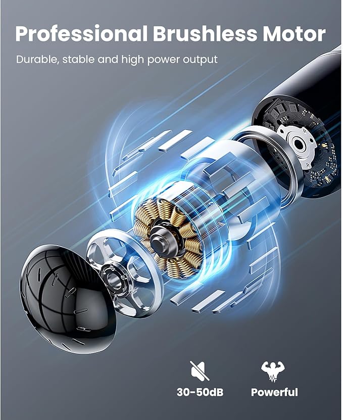 - High-Performance Brushless Motor & Deep Tissue: The Q2 Mini Massage Gun features a brushless motor delivering 3000 RPM for powerful, deep tissue therapy. The motor ensures quiet operation, durability, and consistent power, outperforming traditional motors. With 3000 RPM, it relieves tension, improves circulation, and speeds recovery. Compact yet powerful, it’s perfect for athletes, fitness enthusiasts, or anyone seeking professional-grade relief.