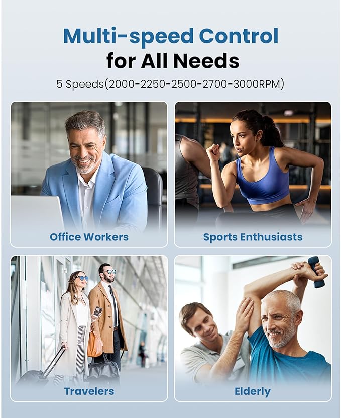 - Compact & Quiet Design: Weighing only 0.88 lbs and measuring 5.3 x 3.35 x 1.9 inches, this mini massage gun is highly portable. Operating at under 55dB, it ensures a discreet and relaxing massage experience. Its lightweight and quiet design make it perfect for home, office, or travel use, offering relief anytime, anywhere.