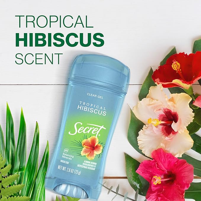 Secret Fresh Antiperspirant Deodorant for Women, 72hr Breathable Sweat & Odor Protection, Instant Freshness & Gentle, PH Balancing Minerals, Clear Gel, Tropical Hibiscus Scent, 2.6 oz