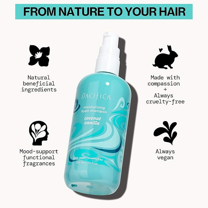 Pacifica Coconut Vanilla Moisturizing Foam Shampoo – Hydrating Foaming Shampoo for Dry, Dull or Damaged Hair, Lightweight Lather, Sulfate-Free Clean Beauty Vegan & Cruelty-Free Dermatologist Tested