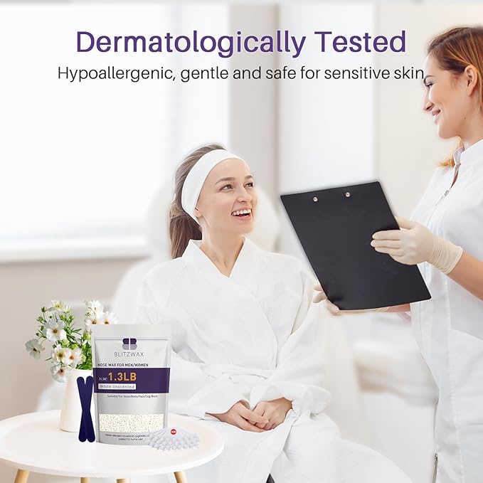 - 🌿𝗙𝗿𝗮𝗴𝗿𝗮𝗻𝗰𝗲-𝗙𝗿𝗲𝗲 𝗪𝗮𝘅 𝗙𝗼𝗿 𝗦𝗲𝗻𝘀𝗶𝘁𝗶𝘃𝗲 𝗦𝗸𝗶𝗻: BLITZWAX unscented, HRIPT certified bulk bead wax is perfect for sensitive skin. The gentle formula minimizes irritation while effectively removing hair, even for delicate areas like face, ensuring irritation-free results