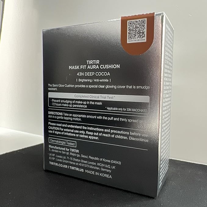 TIRTIR Mask Fit Aura Silver Cushion Foundation | Semi-glow Finish, Natural Coverage, Moisturizing, Lightweight, Korean cushion foundation (#43N Deep Cocoa, Full Size, 0.63 Fl Oz)