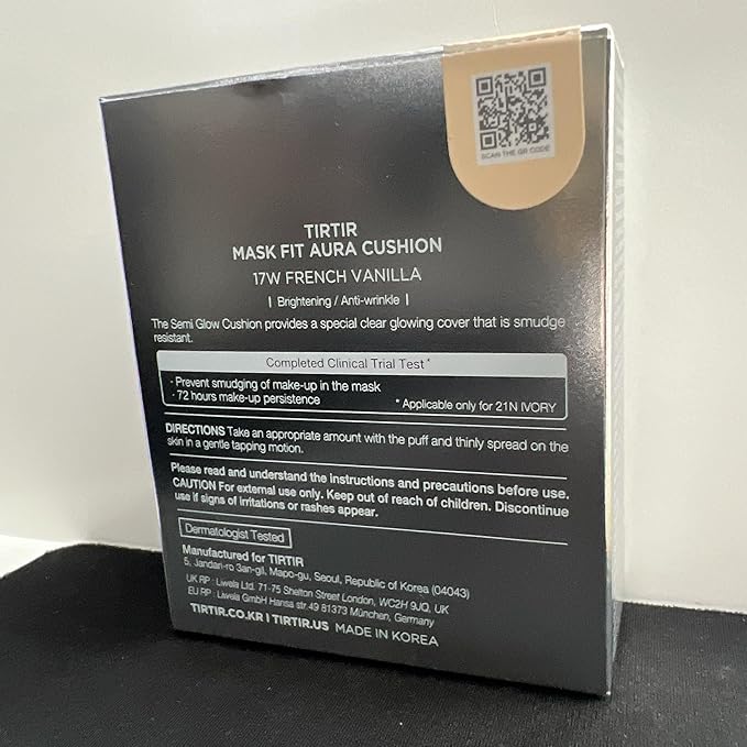 TIRTIR Mask Fit Aura Silver Cushion Foundation | Semi-glow Finish, Natural Coverage, Moisturizing, Lightweight, Korean cushion foundation (#17W French Vanilla, Full Size, 0.63 Fl Oz)