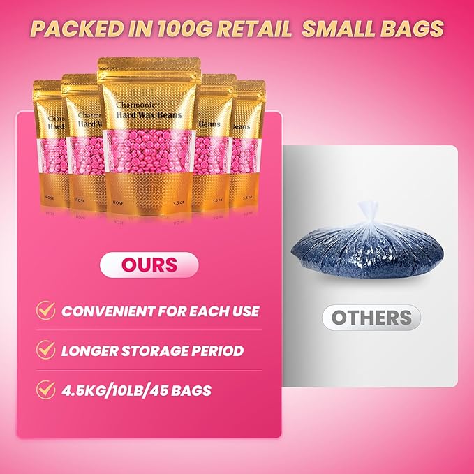- Thoughtful Individual Small Packs: Our waxing kit is packed in 45 small packages, 100g each. The advantage of small packages is that you can only use a few packs each time, and the rest of the wax beans still be kept fresh and in the best condition, avoiding oxidization or failure over time, which is also beneficial for giveaway or reselling.