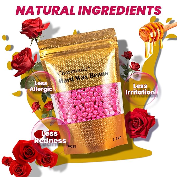 Charmonic Hard Wax Beads, 10 LB Wax Beans, Bulk Hair Waxing Beads for Face, Eyebrow, Brazilian, Legs, Body and Bikini Hair Removal, Depilatory Wax Bead, at Home Waxing Kit for Women & Men (Rose)