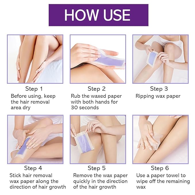- EASE OF USE : Rub strip in your hands for 10 seconds to heat wax, pull strip apart and apply to skin, hold skin taut and pull opposite of hair growth. Use our post-wax wipes help removing any wax residue.
