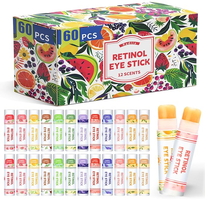 - ✅ Portable Eye Balm Stick | 12 Natural Scents·60-Pack. Compact rollerball design fits easily in any bag - perfect for travel! Use day or night as makeup primer or multi-purpose skincare. Choose from 12 plant-based scents (like lavender/citrus). 60-piece value set for all needs. Lightweight, non-greasy & gentle for all skin types.