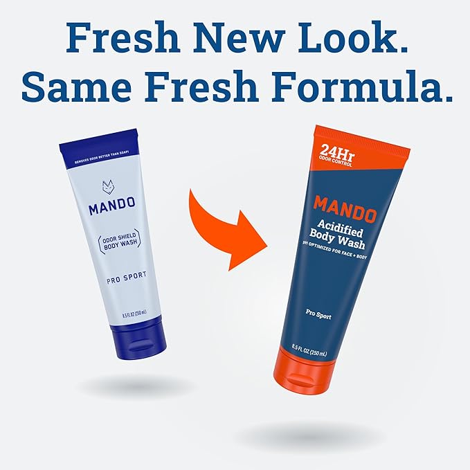 Mando Odor Shield Body Wash - 24 Hour Control - Removes Odor Better than Soap - SLS Free, Paraben Free, Skin Safe - 8.5 Ounce (Pack of 2) (Pro Sport)
