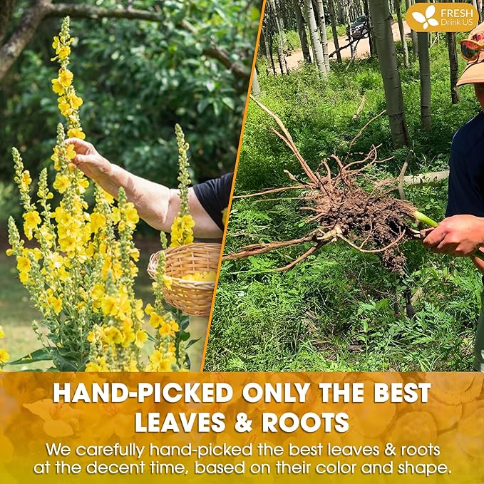FreshDrinkUS, Premium 75 Mullein Licorice Tea Bags, 100% Natural, Blend of Mullein Leaves, and Licorice Root. Made with Natural Material Tea Bags. No Sugar, Vegan.