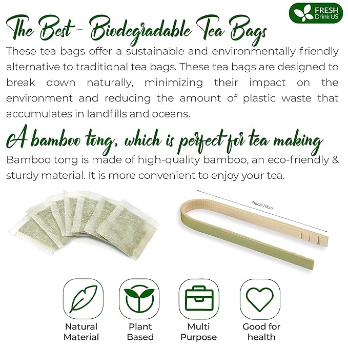 - ☘️ BIODEGRADABLE TEA BAG - NATURAL MATERIAL: The tea bags are made of natural corn fiber, which is friendly and nice for the environment. No Strings. No Wrapped. No Staples. No Adhesive. No Bleach. No Dyes - 100% Safety.