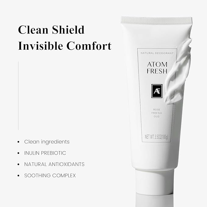 Atom Fresh Deodorant for Women, Natural Deodorantcream with 72-Hour Odor Control, Aluminum Free Deodorant for Sensitive Skin, Baking Soda Free with Amino Acids & Probiotics, Rose Fressia Oud, 3.5 oz
