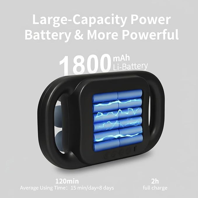 - Large Capacity Battery: The fascia gun has a built-in 1800mah large-capacity battery, which takes about 2 hours to fully charge and can work continuously for up to 120 minutes when fully charged, allowing you to enjoy the continuous and lasting massage pleasure without worry. It can be charged via USB TYPE-C.