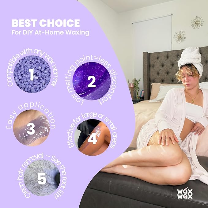 - LOW MELTING POINT & STRIP-FREE: Melts at a low, safe temperature to avoid discomfort. Applies smoothly and peels off without strips, offering easy, clean stripless wax hair removal—ideal for pro-grade hair removal wax at home.