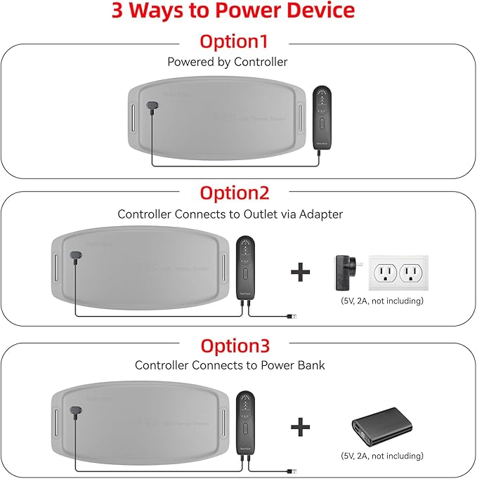 - ✅【True Portability】 Our red light belt comes with an adjustable 35.4-inch elastic strap, and the 16.9" x 8" red light therapy mat easily wraps around the waist, back, shoulders, hips, or any area that needs relief — for both pets and humans. The controller has a built-in 3000mAh battery, freeing you from power outlets for cordless, on-the-go use with your red light wrap.