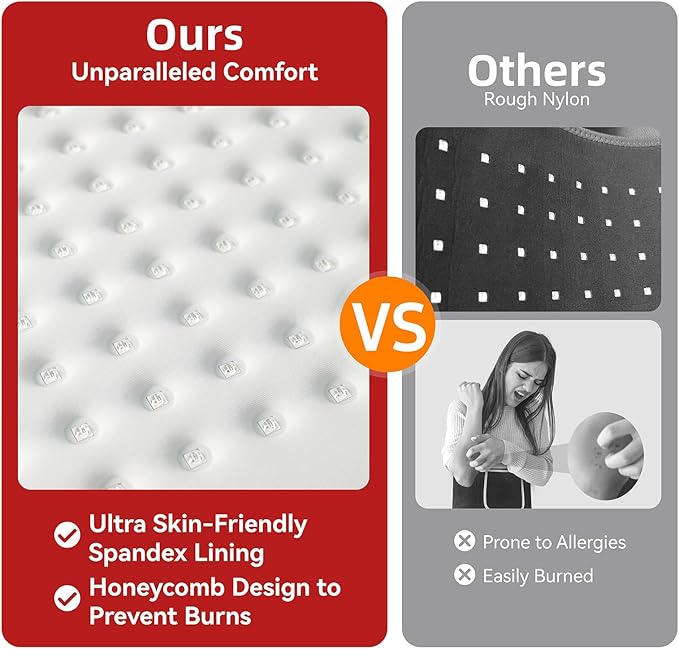 - ✅【Enhanced Safety】 For maximum safety, our red light therapy pad features 8-layer temperature protection and a unique honeycomb structure that prevents direct skin contact with the LED beads, eliminating any risk of overheating. Additionally, each LED bead is equipped with lens-focusing technology to concentrate and enhance light penetration — allowing you and your pet to enjoy professional-grade red light therapy right at home!