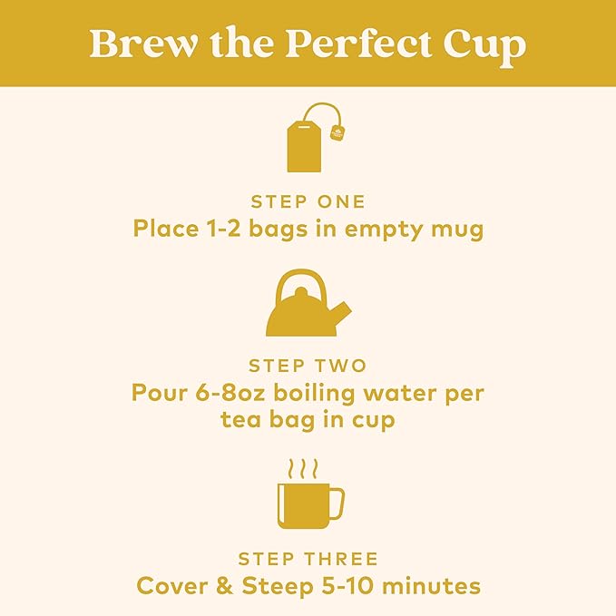 - HOW TO BREW: Place 1-2 Chamomile tea bags in an empty mug. Pour 6-8 ounces of boiling water per tea bag in cup, and cover and steep for 5-8 minutes