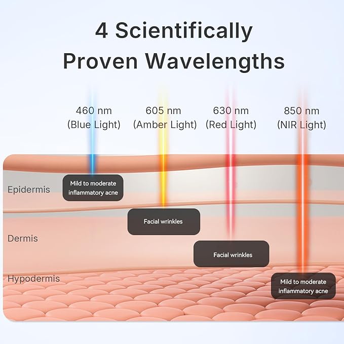 - ✅【Upgraded 4 Chips】- The LED mask light therapy features 180 high-power professional LED beads, with each bead containing 4 chips (1×630nm, 1×850nm, 1×605nm, and 1×460nm), totaling 4 LED chips—more LEDs mean broader energy coverage, helping improve overall skin circulation and health. The professional-grade Hello Face red light beauty device is not only suitable for home use but also perfect for spa and aesthetic centers