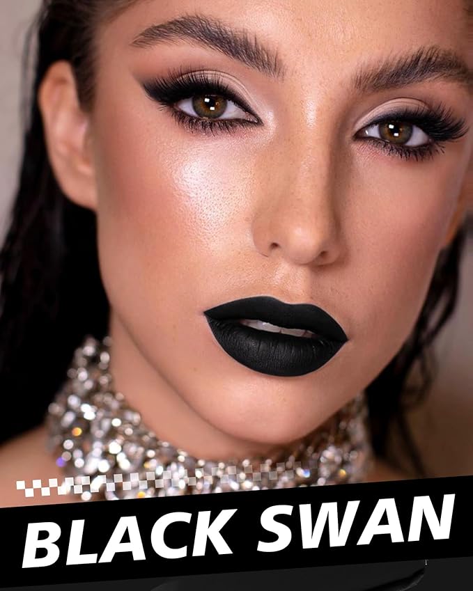 Black Lipstick Long Lasting, Matte Liquid Lipsticks for Women Non Transfer Smudgeproof Smooth and Easy to Appy Cruelty Free Lip Color, M14 Black Swan