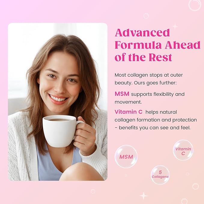 - Easy to Use – Our multi-collagen peptides powder is unflavored, odorless, and dissolves easily in hot or cold drinks—perfect for coffee, smoothies, yogurt, soups, or baking. Just 1–2 scoops daily, anytime