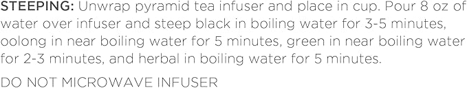 - HOW TO STEEP - Unwrap the Pyramid Infuser, steep in hot water, and reveal the exquisite nature of the whole leaf teas. Allows the tea leaves to fully unfurl in the water, resulting in a most flavorful cup of tea. Do not microwave pyramid infuser.