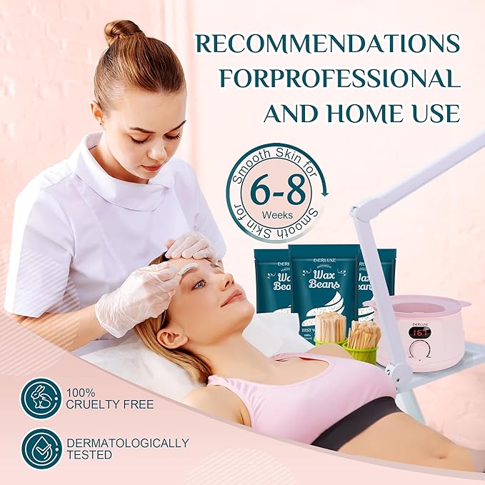 - Deep Removal, Enduring Smoothness:Specially formulated for professional-grade results, Everluxe hard wax beads grip hair at the root, ensuring effective removal while minimizing skin discomfort. Perfect for eyebrows, face, lips, arms, underarms, bikini areas, and more, our wax beads for hair removal ensures up to 98% removal efficiency,delivering a smooth application and long-lasting smoothness for up to 4-8 weeks
