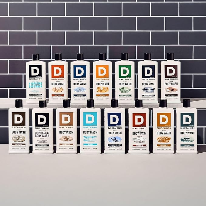 - Duke Cannon Body Wash – Thick, high-viscosity formula designed for men. Cleanses dirt, sweat, and odor while moisturizing skin with a bold, long-lasting scent. Perfect for daily use, athletes, and active lifestyles—tough on grime, gentle on skin.