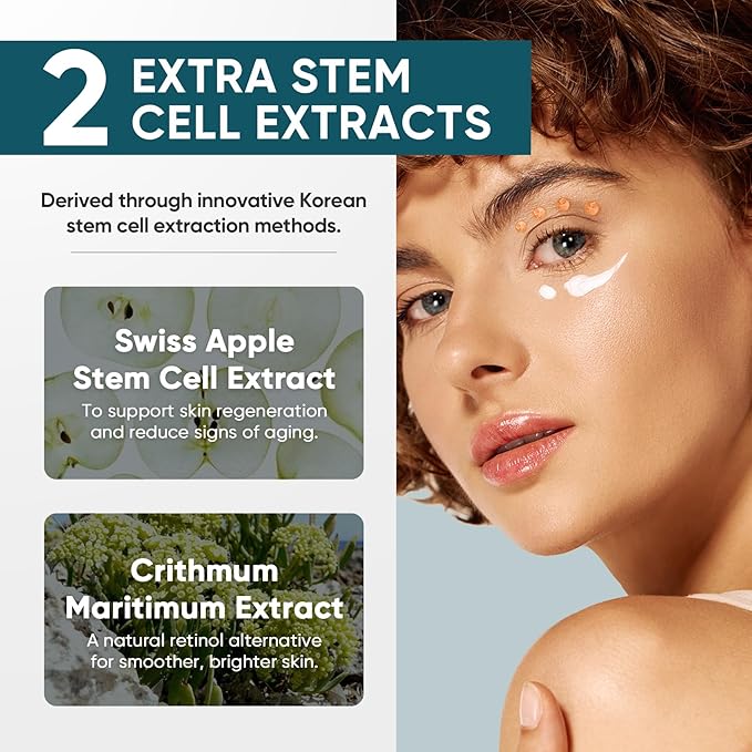- Naturally Derived, Scientifically Proven: Harnessing the longevity of Swiss apple stem cells and the resilience of marine botanicals—extracted using advanced Korean cell technology—this formula helps energize tired skin, protect against environmental stress, and support natural regeneration, reviving the delicate eye area with visible firmness and vitality