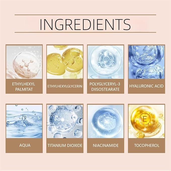 - Natural matte finish,without clogging pores, texture and fine lines,leaving your skin looking fresh and hydrated.