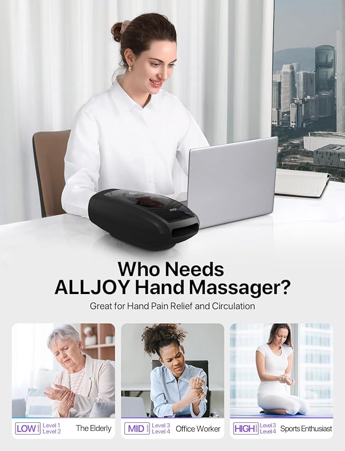 - Massager Pain Relief: Experience relief with the RIKE Electric Hand Massager, featuring customizable pressure point therapy; It offers 6 compression massage programs, 6 intensity levels, vibration, and soothing heat; Press the power button to start, select the program, adjust the intensity. It's ideal for sore hands and adjustable to your needs, ensuring a relaxing massage experience